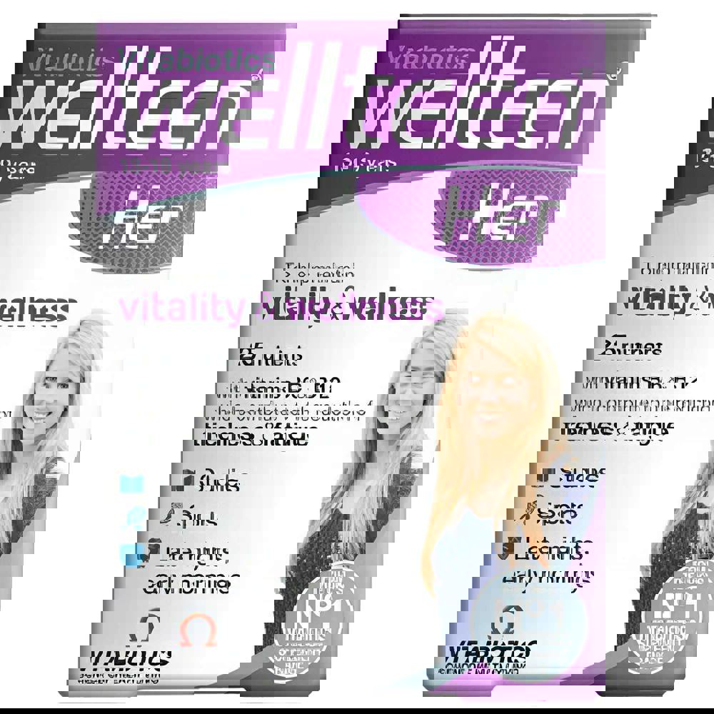 From Vitabiotics, Wellteen Her is a daily multivitamin tablet designed to provide advanced nutritional support for teenagers and young women. Specifically formulated for ages 13–19 years, it offers a comprehensive range of vitamins, minerals and botanical extracts to help support daily nutritional requirements, particularly when a healthy, balanced diet is harder to prioritise in a busy routine.