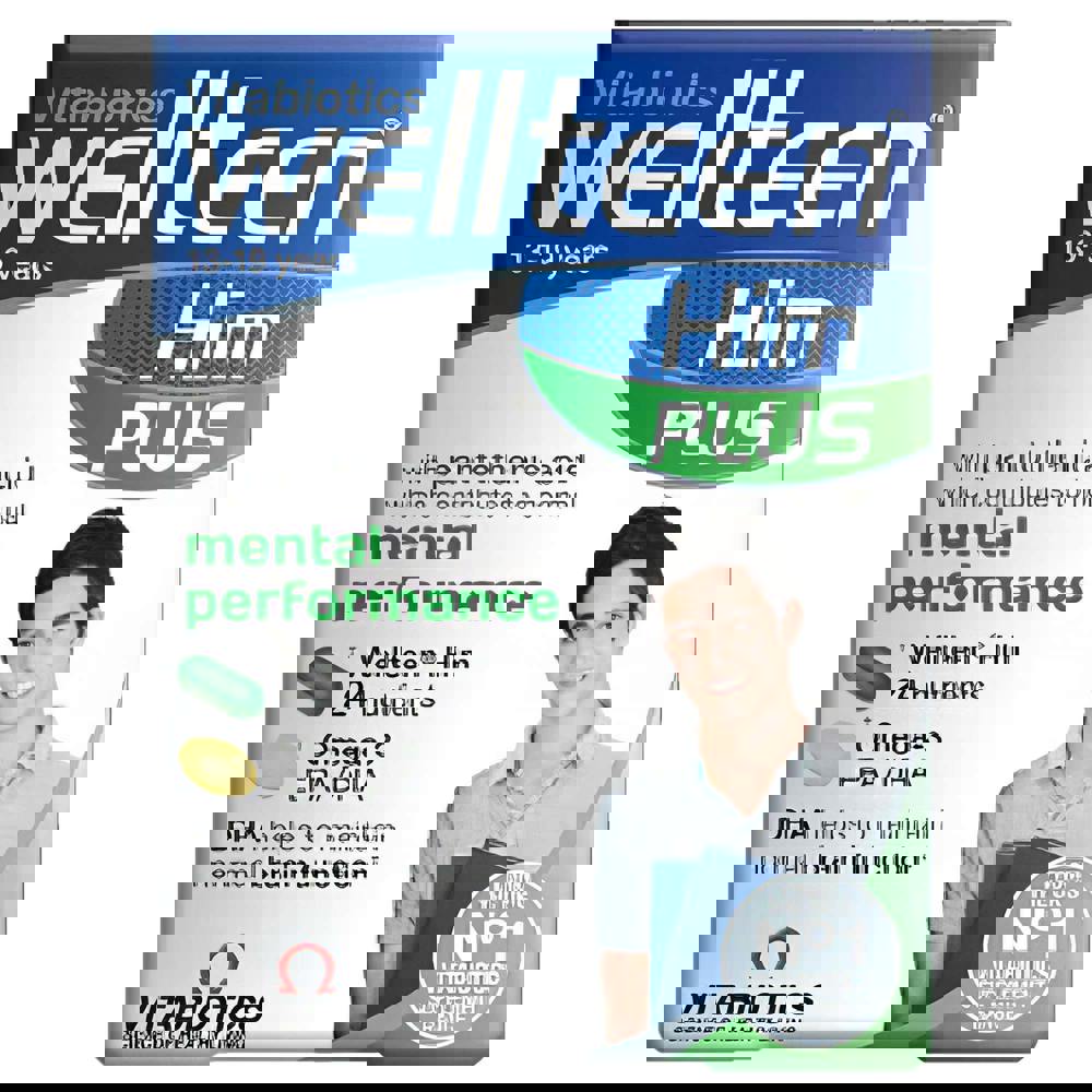 Even greater nutritional support for teenagers and young men Wellteen Him Plus contains the original Wellteen Him tablet formula, with a high purity Omega-3 capsule, in a convenient 2-in-1 pack.