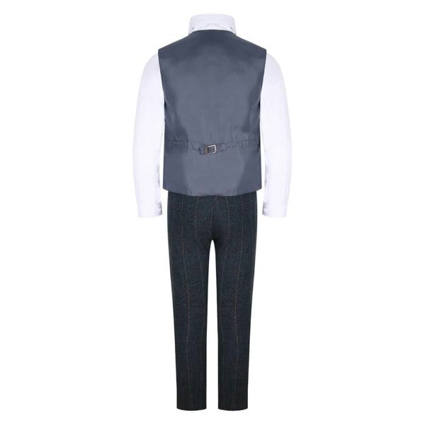 This 4 piece suit comes with tweed herringbone waistcoat, elastic trousers, white shirt and tie, with stitched pocket.