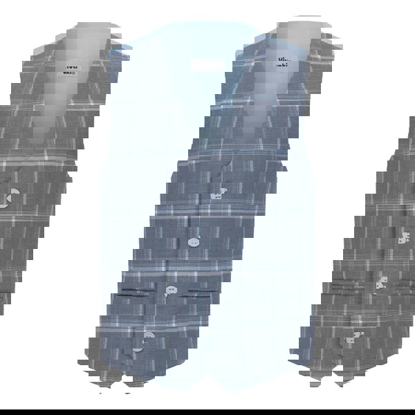 This chic ensemble features a navy and sky blue check waistcoat and a matching tie, making it the ideal choice for any special event. The waistcoat boasts 4 stylish buttons on the front and a sleek silver clasp at the back, allowing for easy size adjustments. Plus, the set includes an elasticated matching tie for added convenience.
