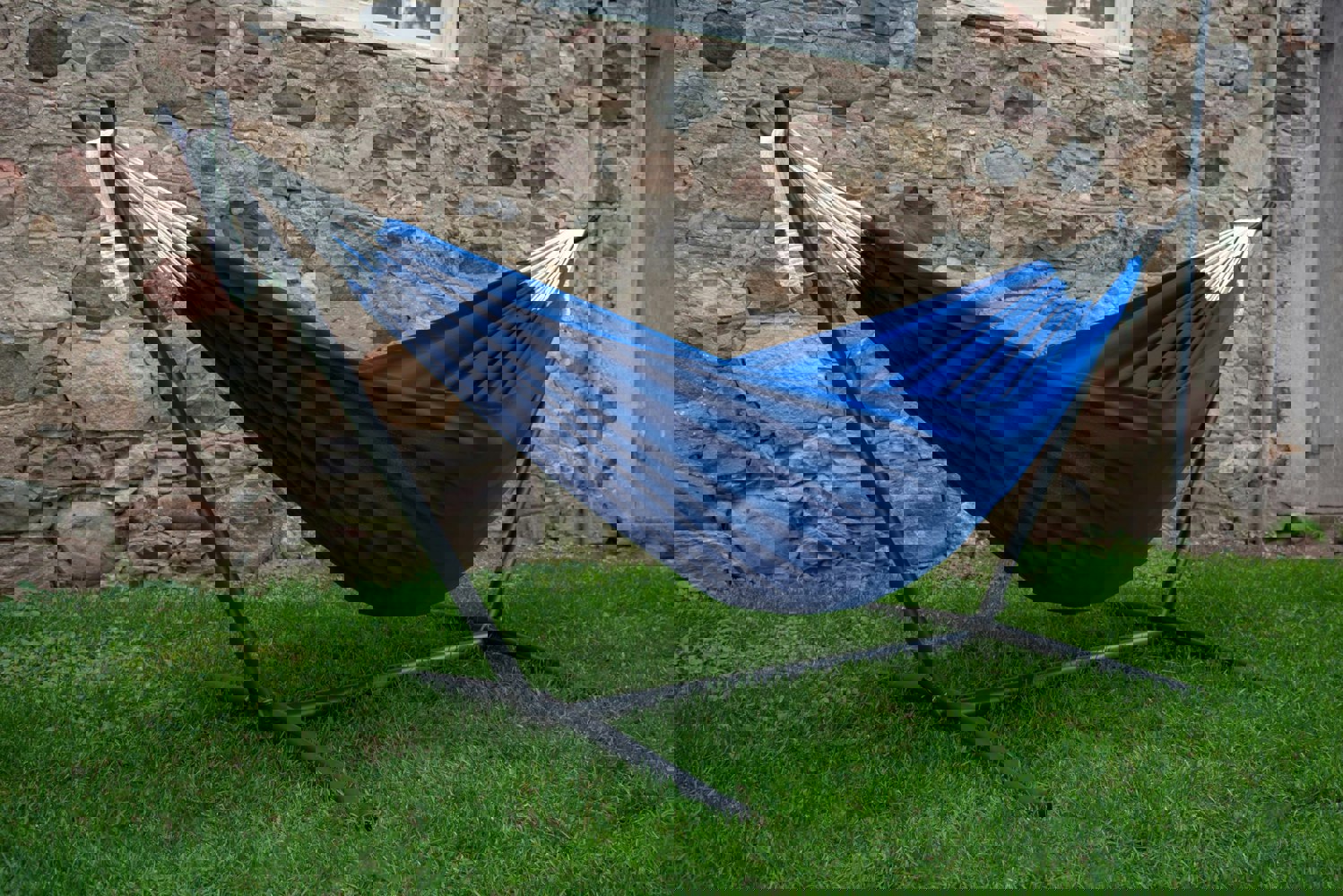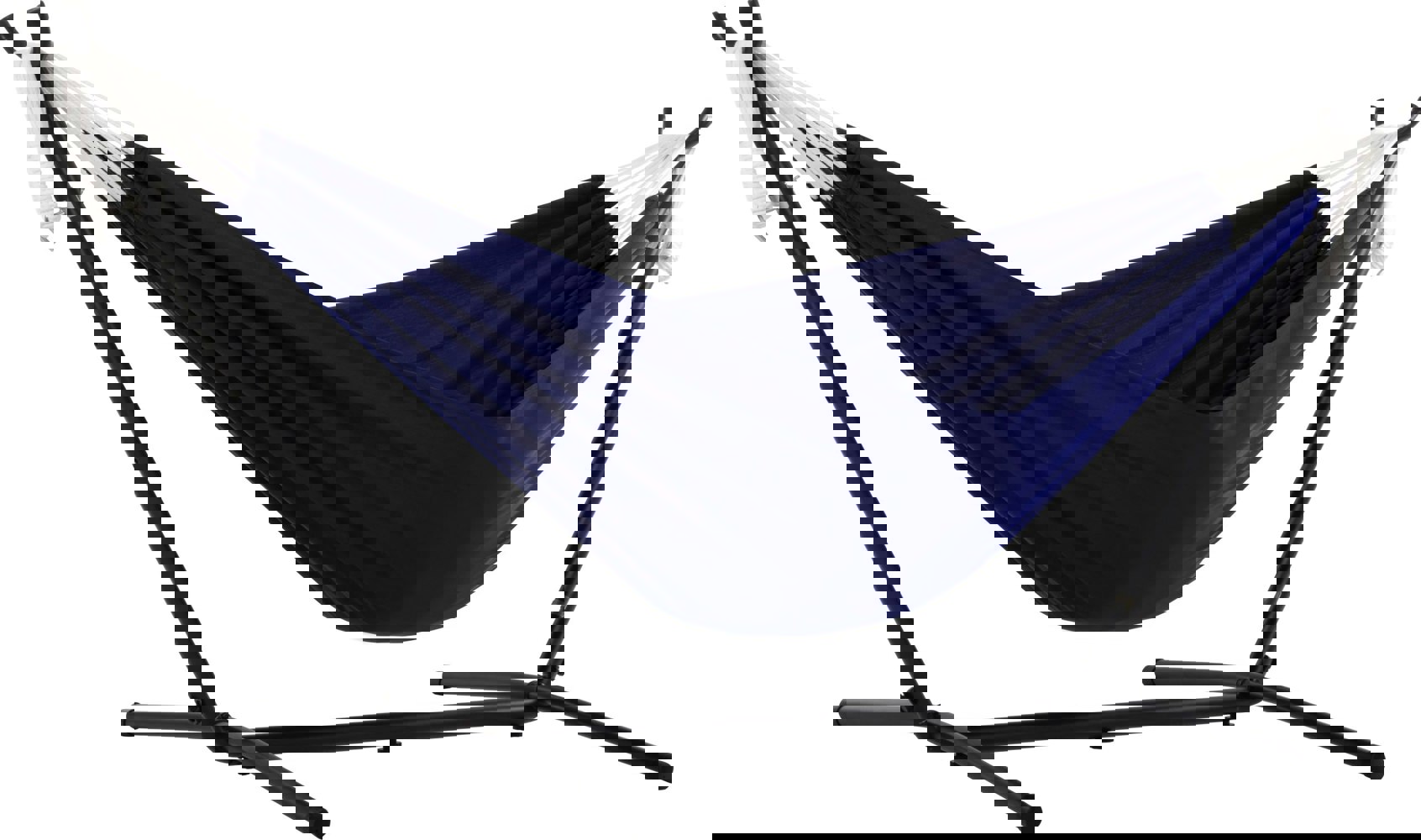 Introducing the best of both worlds, Vivere’s Double Polyester Hammock with Stand brings you the durability and saturated colour of woven polyester. This single-ply hammock fits on the easily assembled stand, no tools required. Rubber caps are fitted on all ends, allowing for a soft finish on whatever surface you choose for setup. Enjoy the freedom year after year that this product allows by locating it in the most convenient location. Easily moved to allow for sun or shade outdoor relaxation.