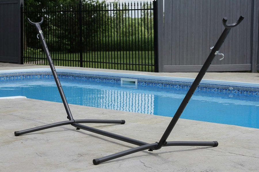 Assembly takes just minutes and requires no tools, while adjustable hammock hooks let you choose a higher or lower hang to suit your preference. Plastic caps on the ends of the steel tubing create a softer finish, and a carry bag is included for easier transport and storage. This stand is suitable for hammocks with a total length of 340–400cm.