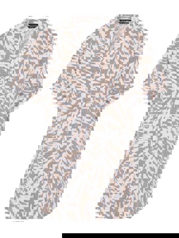 Chic cotton-viscose top in a stylish abstract print of taupe and white. Features a flattering grandad collar V-neck, full-button placket, rolled-up short sleeves, and a curved hem. The lightweight blend makes this top perfect for all-day comfort.