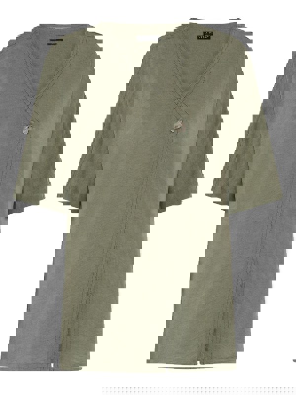 Our versatile top is crafted from a linen look fabric for lightweight comfort. Cut to a breezy fit for easy wear. A flattering v-neck, grown on sleeves, striking pesto colour plus its button feature cross-over, creates an instant wardrobe favourite.