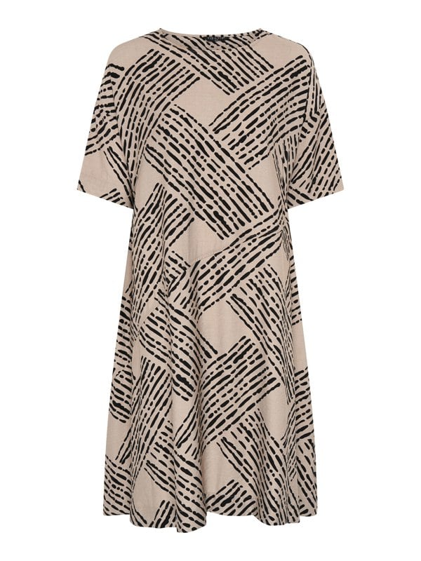 Be effortlessly stylish in our slub poly-viscose Dress. With its eye-catching trellis print, this dress is perfect for any occasion. Plus its cut in a relaxed fit for your comfort. Team with its matching Shacket V25-32A for perfect co-ordination.