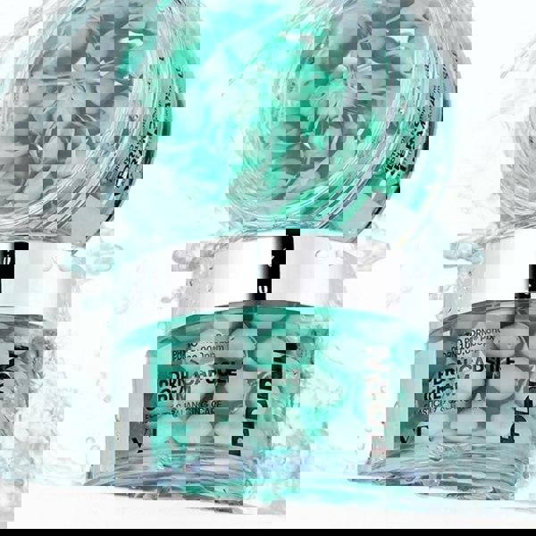 The cream features dense, visible capsules that melt into the skin, releasing hydrating and firming ingredients with every application.