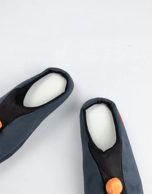 Introducing the Wallace And Gromit Feathers McGraw Black Red Orange Mule Slippers, designed for adults who appreciate comfort and playful design