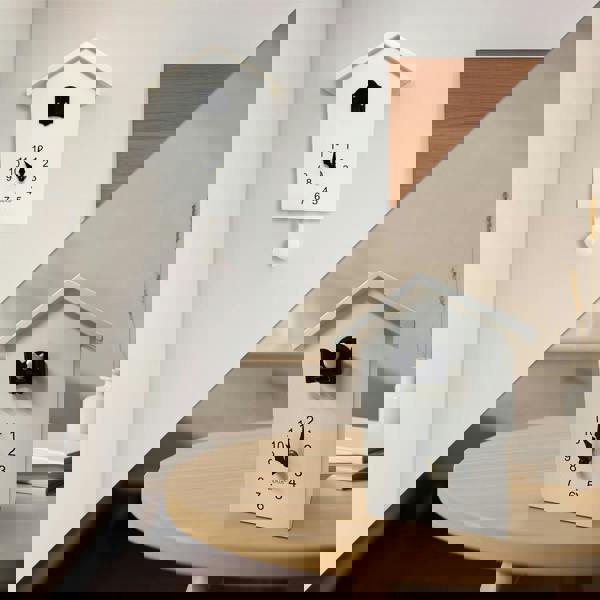 This Minimalistic White Cuckoo Clock makes a perfect gift and adds a timeless charm to any home, whether you're using it in a living room, bedroom, or even as a playful yet elegant addition to a child's room.
