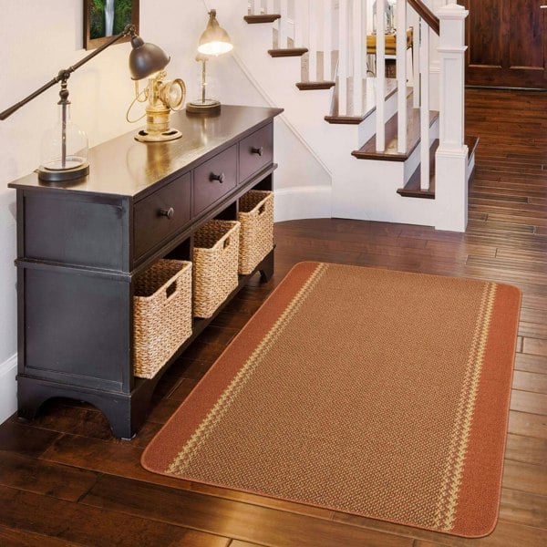 Add a warm and earthy touch to your home with the Washable Designer Bordered Terra Rug. Its terracotta-inspired bordered line design brings subtle character to any space while remaining practical for everyday use.