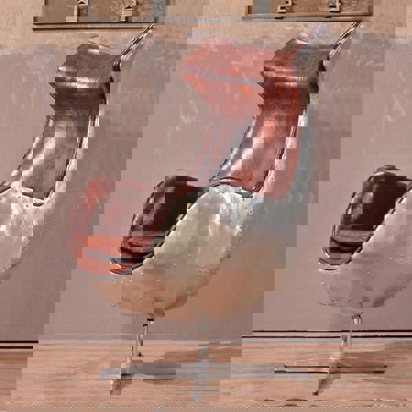 A3 Aviator Egg chair, Brown Leather, Aluminium