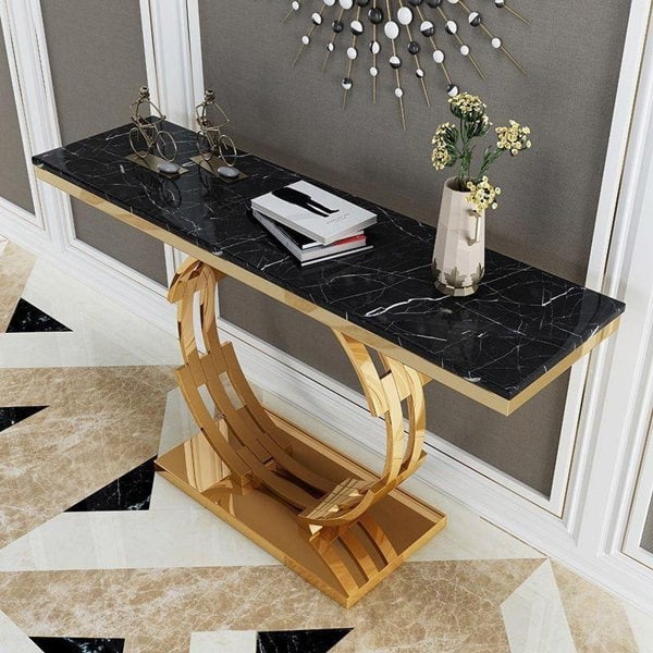 Made from marble and metal, the Abbey Console Table is finished in black and white for a crisp, contrasting appearance. It arrives fully assembled, so it can be positioned and used straight away.