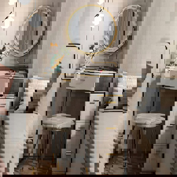 Stool: PU Leather, Painted Steel, High Density Sponge
