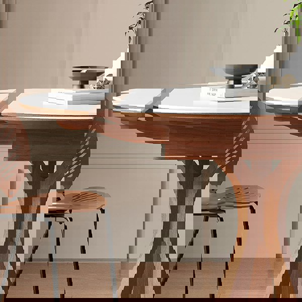 The Weilai Concept Caruso Round Extending Dining Table is a contemporary, modern piece designed for everyday dining with the flexibility of an extending top when you need extra space. Finished in a white and black colourway with walnut detailing, it brings a clean, considered look to a range of dining settings.