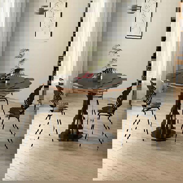 Designed to bring flexibility to contemporary dining spaces, the Weilai Concept Caruso round folding dining table pairs a solid wood base with a black sintered stone tabletop. Its considered mix of materials creates a confident, modern look that suits everyday dining while offering a practical folding design for homes where space and layout can change from day to day.