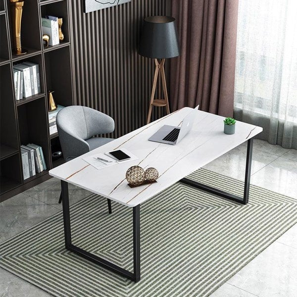 Made with sintered stone and painted steel, this desk provides a practical surface for everyday working, studying, or organising essentials.
