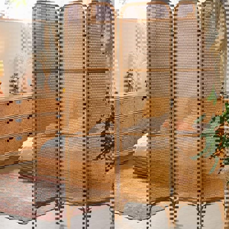 The Weilai Concept Charlesworth rattan room divider and folding screen is a contemporary piece designed to help section off areas within your home. Finished in an oak look with a wooden colour, it offers a simple way to create separation in living spaces, bedrooms or home-working areas while keeping the layout flexible.