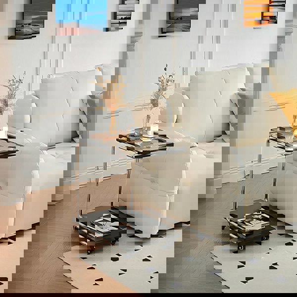 Material: Multiply-Solid Wood, Stainless Steel, Tempered Glass, Wheel