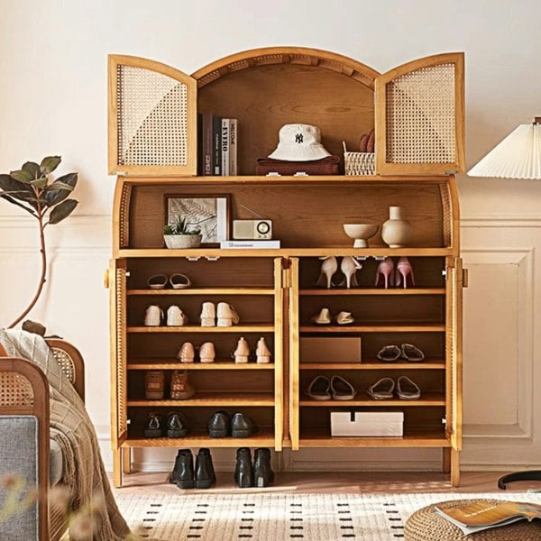 The Otti Shoe Storage Console Table brings a contemporary, modern look to your hallway while helping to keep everyday footwear neatly organised. Designed as a console table with integrated shoe storage, it offers a practical place to store shoes out of sight while keeping your entryway feeling tidy. Finished in a cherrywood colour, it’s an easy way to introduce warm, natural-looking tone to your space.