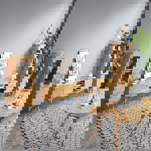 The Weilai Concept Freddie TV Stand is a contemporary and modern piece designed to support your TV and media essentials in a living space. Finished in an ash colour, it offers a clean, understated look that suits a wide range of interiors.