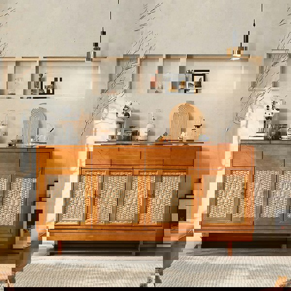 The antique sideboard design adds a touch of timeless elegance, blending seamlessly with both modern and classic decor.