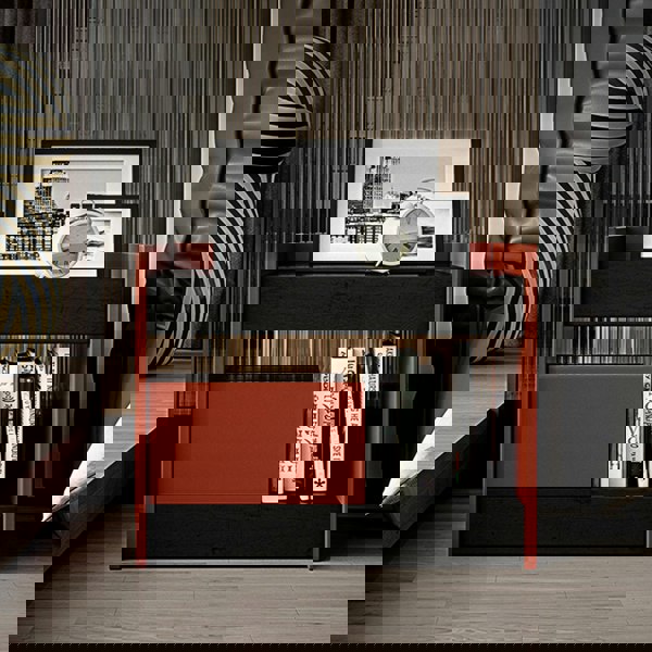 Finished in red and black, the Isolde bedside table brings a bold look to bedroom interiors. No assembly is needed, so it is ready to use as soon as it arrives.