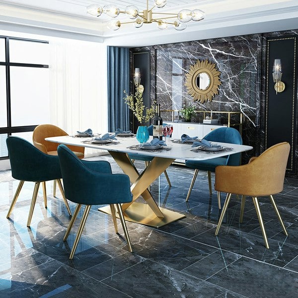 The Weilai Concept LUCI Dining Table brings a contemporary, modern look to dining spaces with a clean white and gold colour palette. Designed as a practical centrepiece for everyday meals and entertaining, it combines a marble top with painted steel elements for a refined, structured finish.