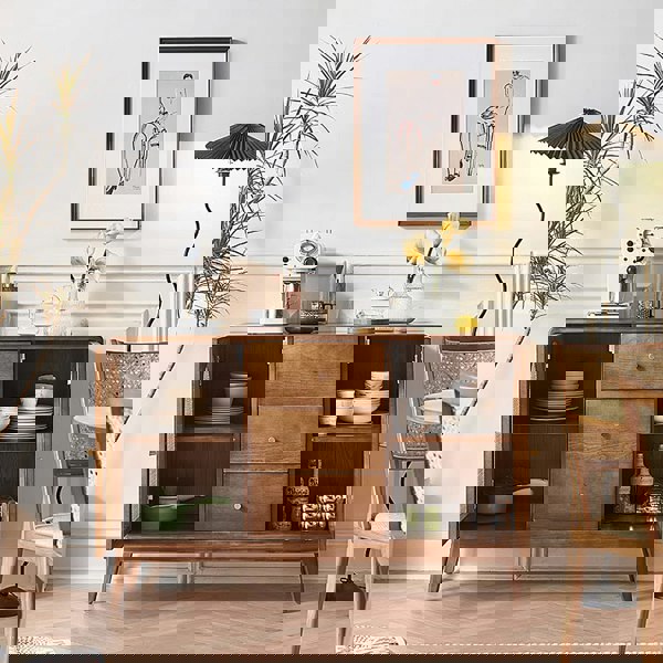 The Weilai Concept Luxander Vintage Sideboard brings a contemporary and modern look to your living space, while offering a practical place to organise everyday items. Finished in a walnut colour, it’s designed to sit neatly in a range of interiors, from open-plan living areas to dining rooms and hallways.