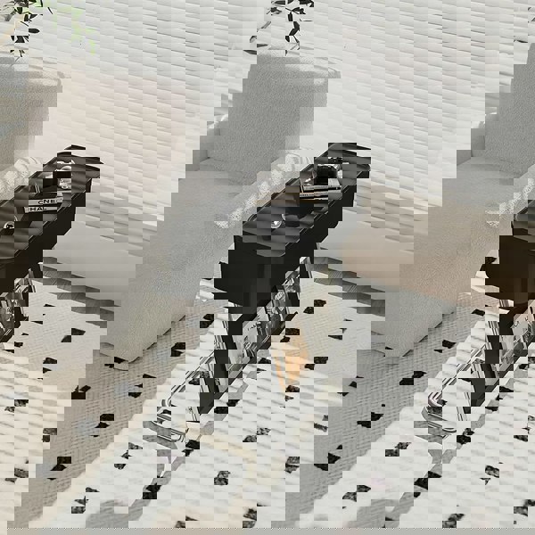 Finished in black, this storage side table is made from carbon steel and is designed for straightforward home assembly, with the leg needing to be fitted. A simple wipe with a damp cloth helps keep it looking its best.