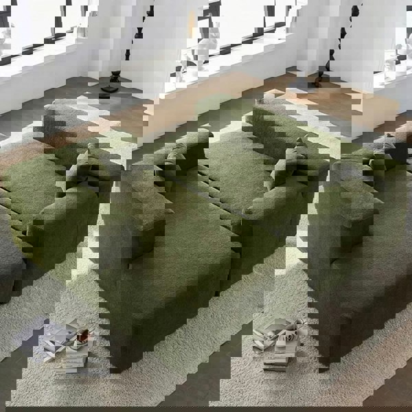 Integrated storage provides a convenient place to keep bedding and other essentials close to hand, helping you keep your living room organised. Finished in green boucle upholstery, Ortega adds a soft, textured look suited to modern interiors.