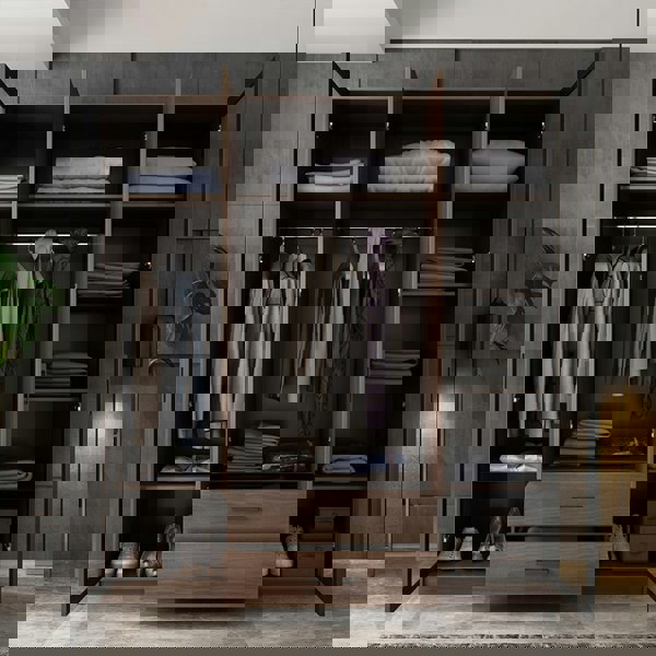 The Weilai Concept Sanders Wardrobe brings a contemporary, modern look to your bedroom, combining rosewood and black tones for a clean, considered finish. Designed for everyday storage, it offers a practical wardrobe solution while adding a distinctive presence to your space.