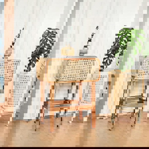The Weilai Concept Wren Rattan Side Table is a contemporary piece designed for everyday use as a side table or bedside table. Made from wood and rattan, it offers a clean, modern look that suits a range of indoor spaces.