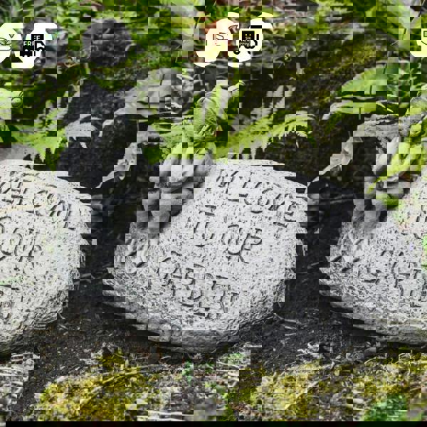 This stunning figurine of a Forest Frog sitting on a stone with the words ‘Welcome to our garden’ inscribed, is a fun, unique piece of décor, ideal for garden entrances and patios. This adorable stone welcome sign featuring a frog would make a lovely addition to your outdoor décor and is sure to receive compliments from guests and visitors. A perfect idea for a gift.