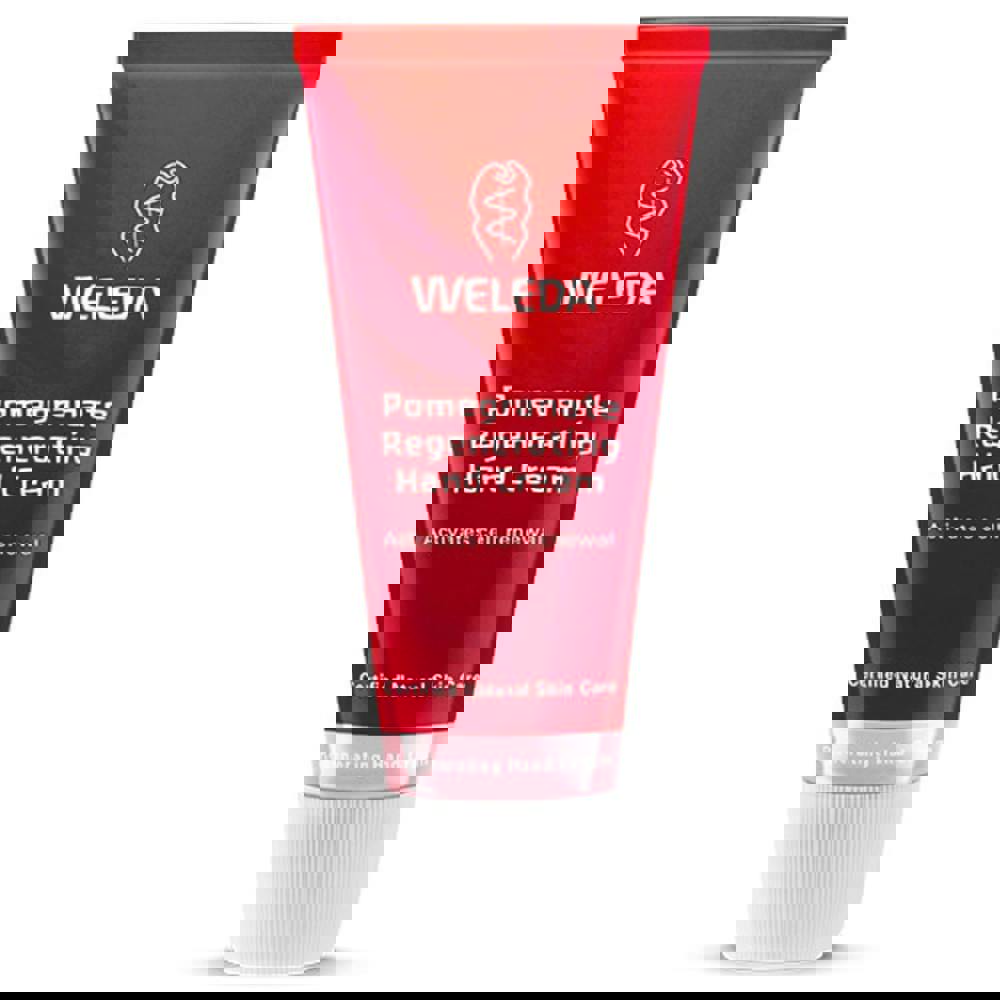 Weleda Pomegranate Regenerating Hand Cream is a skin-renewing, natural hand cream that nourishes and restores hands. Formulated with organic shea butter and natural plant extracts to stimulate cell renewal, Weleda Pomegranate Regenerating Hand Cream is also rich in fatty acids that protect hands against moisture loss. Dermatological tests show that our Pomegranate Regenerating Hand Cream increases the skin's moisture level by 34%* and reduces roughness by 9. 1%** in just four weeks.