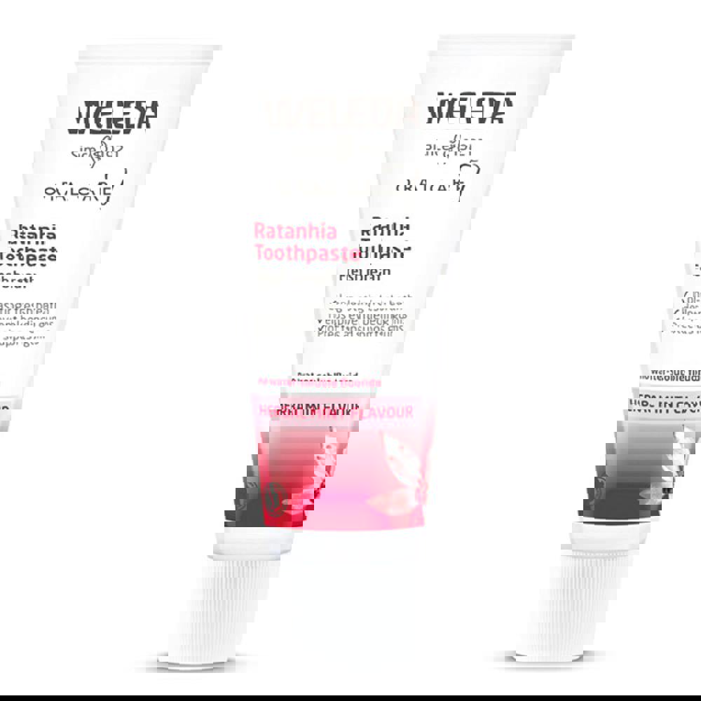 Weleda Ratanhia Toothpaste is an excellent family toothpaste with organic Krameria extract, preventing inflammation and gum bleeding. Use alongside Weleda Ratanhia Mouthwash for increased benefits