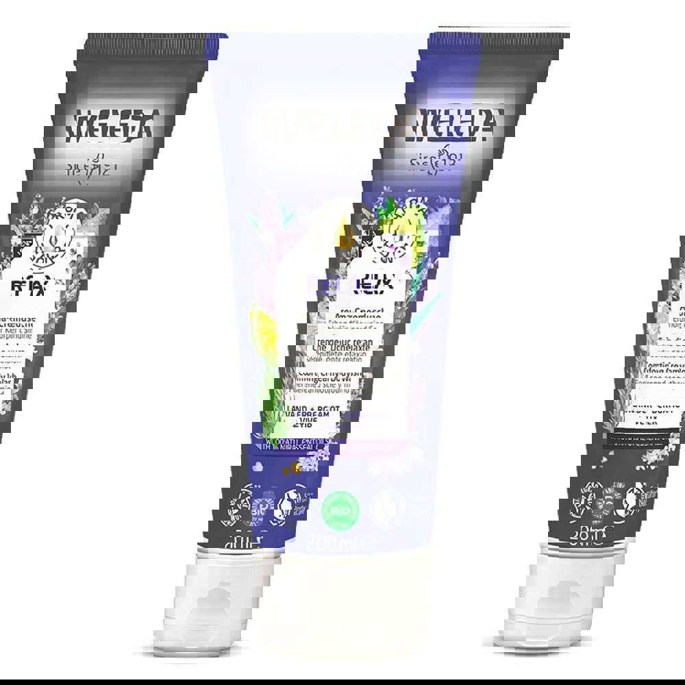 Soothe your mind with Weleda's Relax Aroma Shower. This relaxing shower gel provides comfort and a feeling of pleasant tranquillity.