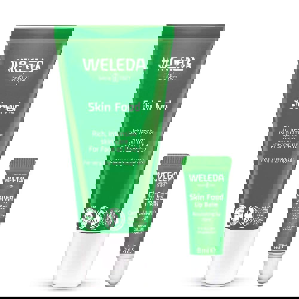 Nourish and comfort dry skin and lips with this Weleda Skin Food duo.