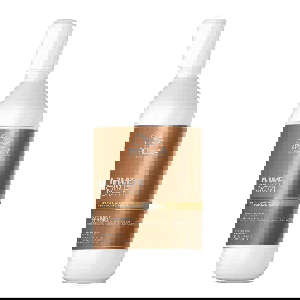 Wella Professionals Ultimate Smooth Shampoo is part of a premium haircare system designed to deeply nourish and smooth hair from the inside out, delivering both instant and long-lasting results. Perfect for dry, dull, or frizzy hair, this transformative formula not only hydrates but also visibly smooths the hair surface. When used in combination with the Ultimate Smooth Conditioner, Mask, and Miracle Oil Serum, it helps achieve silky, nourished hair in just 30 seconds, with up to 3 days of smoothness. * Infused with Metal Purifier technology, the shampoo gently detoxifies hair by removing metal impurities, while a blend of Squalane and Omega-9 penetrates deeply to nourish and replenish. Its gentle cleansing action produces a rich, luxurious lather and is safe for use on colour-treated hair.