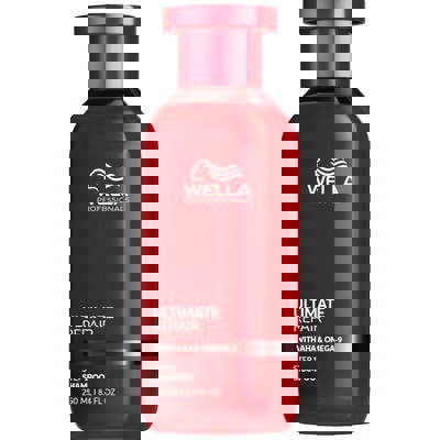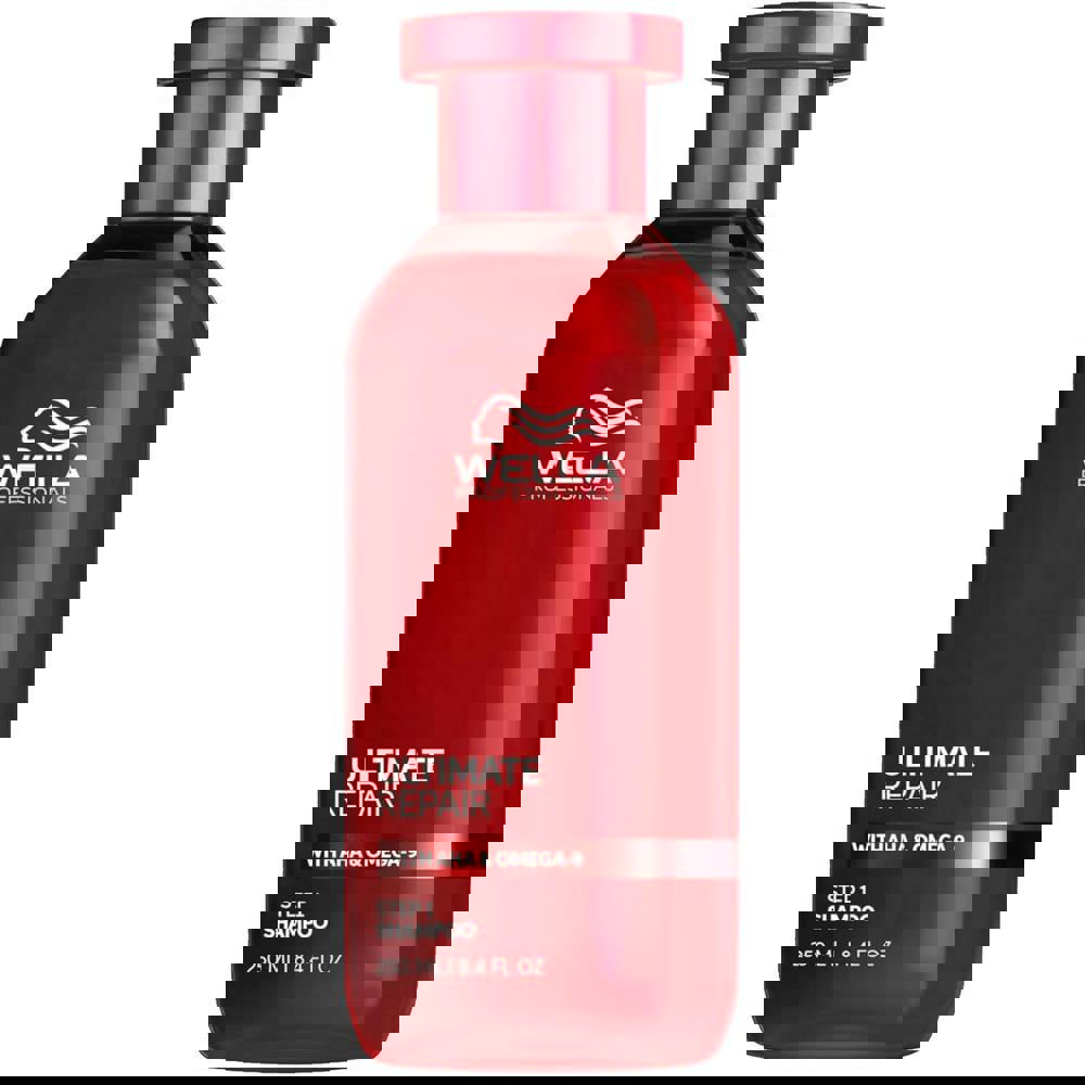 Wella Ultimate Repair Shampoo is a rich cream formula with a lightweight lather that gently and effectively cleanses while preparing hair for repair. Formulated with Metal Purifier technology, AHA, and Omega-9, this shampoo helps detox hair from metals and rebuild damage caused by heat and bleaching, leaving hair looking smooth, shiny, and healthy with a soft, luxurious finish.
