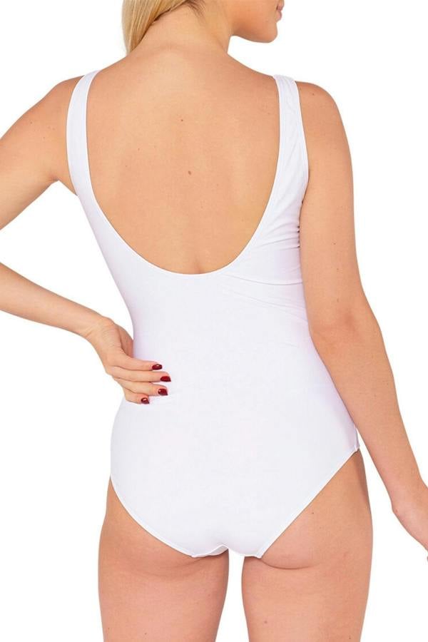 Bring a clean, modern look to swim days with the White Belted Swimsuit. This white one-piece is finished with a simple belt detail for a streamlined silhouette.