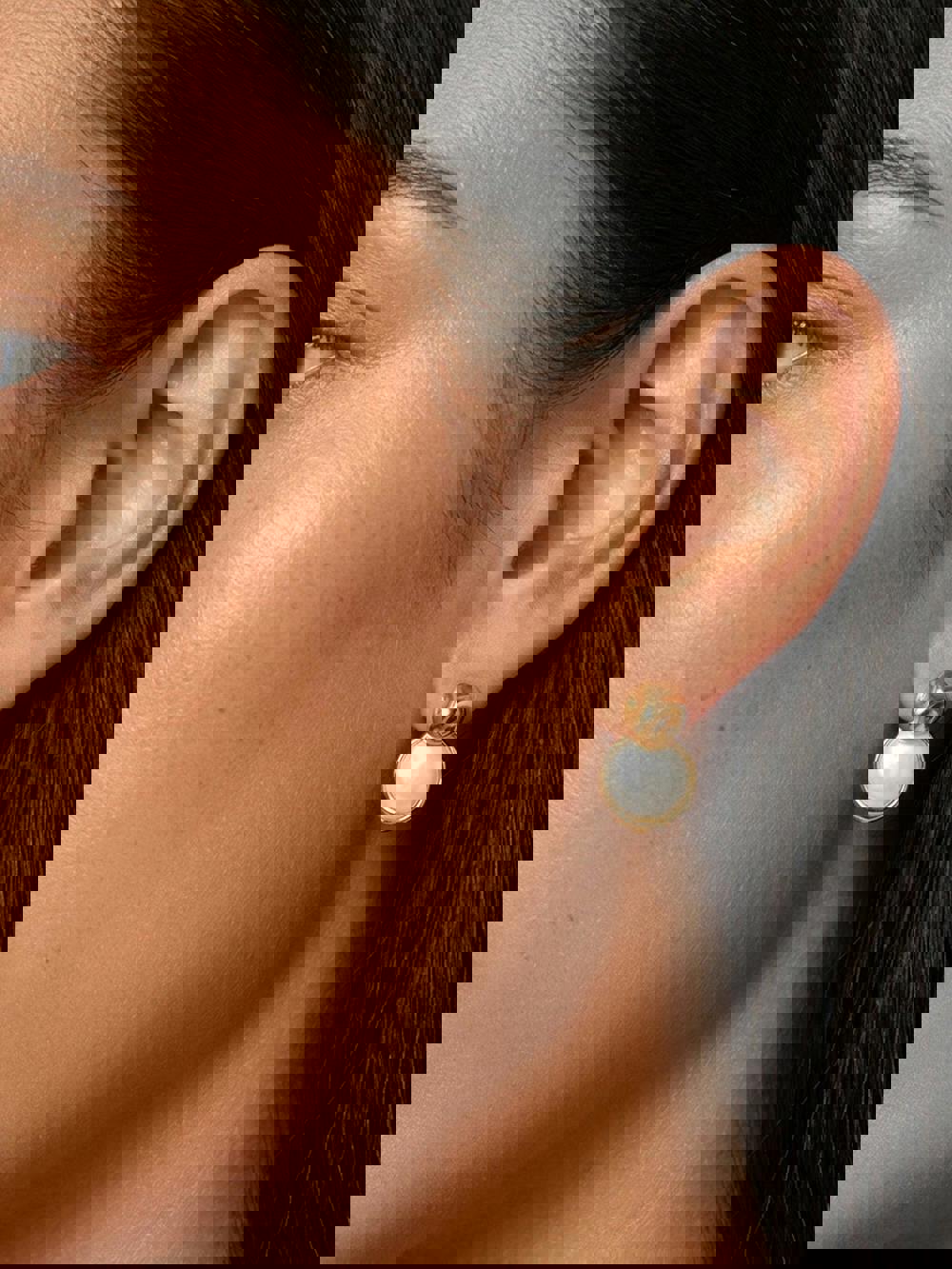 These modern gold stud earrings are designed to go with everything — from oversized knits and workwear tailoring to dinner plans and last-minute nights out. The soft white mother-of-pearl catches the light beautifully, adding a subtle glow to your skin, while the smooth gold circle keeps the look clean, minimal, and effortlessly polished.