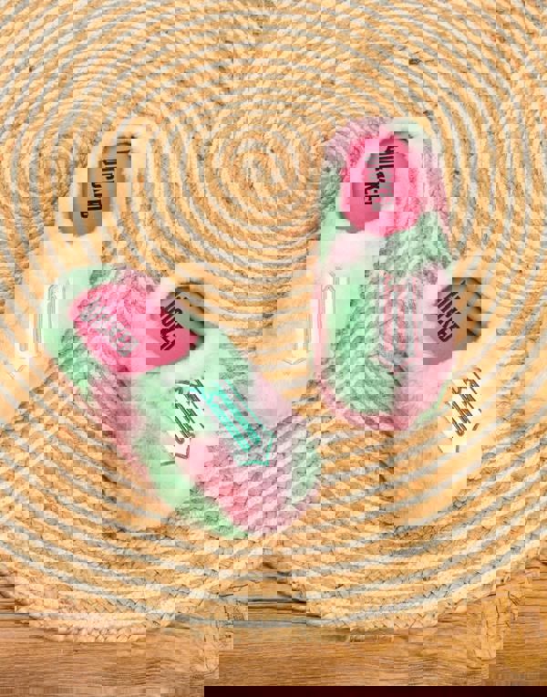 Wicked Girls Pink and Green Fluffy Mule Slippers are a great choice for everyday comfort