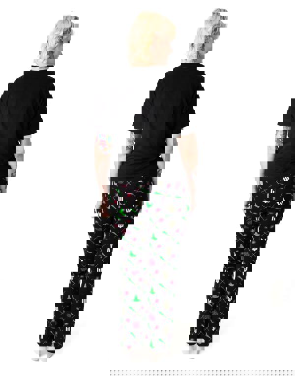 The long leg PJ bottoms boast an all-over print of witches' pointed hats and flying brooms, ensuring you'll feel like you're soaring through the skies, even while lounging on your couch