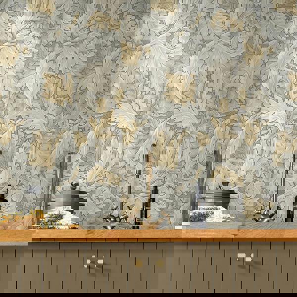 Acanthus Neutral from William Morris at Home displays the beauty of Morris' large leafy designs through the collaboration of contrasting warm bronzy golds and cool silver-grey tones. The matt paper finish of this wallpaper adds a contemporary twist to this elegantly classic design, subtly enhancing any indoor space.