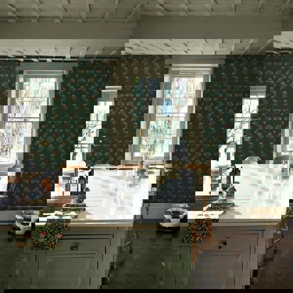 In the Forest colourway, the design takes on a grounded, heritage richness. Warm terracotta florals sit proudly against a deep woodland green backdrop, their delicate detailing softened by sage-toned foliage and pops of pink to accent. The structured repeat lends a quiet formality, while the palette offers warmth and depth, making this an ideal choice for dining rooms, home libraries, or cosy corners with a classic sensibility. Printed on high quality non-woven paper, Hyacinth Flower Forest is simple to hang and designed to bring enduring pattern and poise into the heart of your home.