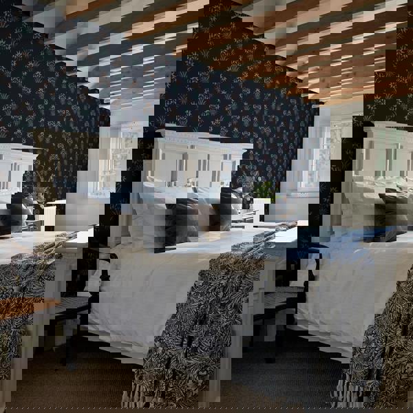 Hyacinth Flower Midnight gives this iconic motif a striking new depth. A rich navy backdrop sets a moody foundation, while stylised hyacinths in warm terracotta and soft ivory bloom against layered blue-green foliage. The repeating floral medallions offer structure and serenity, making this design ideal for both traditional and contemporary spaces that lean into pattern with confidence and poise. Printed on high quality non-woven paper, Hyacinth Flower Midnight is easy to hang and made to bring lasting presence and understated drama to your walls.