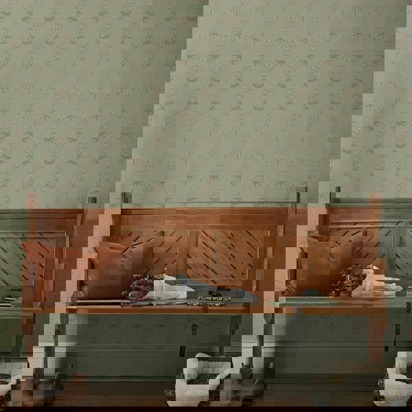 In the Peony & Sage colourway, the design feels soft, serene and timelessly elegant. Pale blush-pink florals with warm ivory centres are set against layered sage green foliage, all resting on a gentle green ground that lends the pattern a soothing, natural presence. The structured repeat adds balance, while the palette creates an atmosphere of calm - perfect for bedrooms, dressing spaces or restful living rooms. Printed on high quality non-woven paper, Hyacinth Flower Peony & Sage is easy to hang and crafted to bring lasting harmony and gentle sophistication to your home.