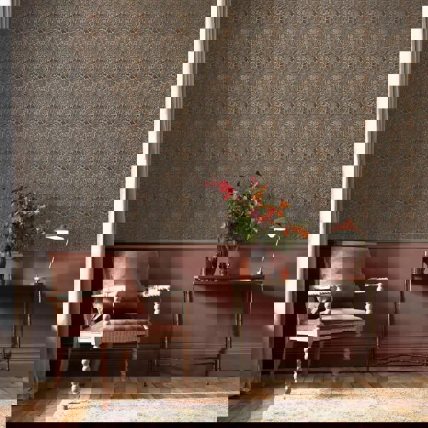 Morris also registered the design as a printed cotton later in 1875, one of only three designs Morris specifically intended to be produced as both a textile and a wallpaper. Marigold Fibrous Charcoal displays Morris' famous design on a textured, matt charcoal paper beautifully detailed with a copper metallic print, adding an eye-catching element to this dark toned wallpaper, making this the perfect choice for a sophisticated feel.