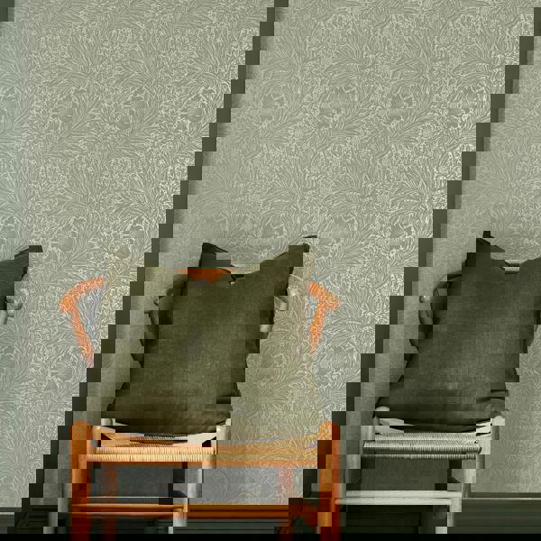 Morris also registered the design as a printed cotton later in 1875, one of only three designs Morris specifically intended to be produced as both a textile and a wallpaper. Marigold Fibrous Sage displays Morris' famous design on a textured, matt sage green backdrop. This beautiful design is brought to life with a full soft gold metallic print for an eye-catching luxurious feel within any home.