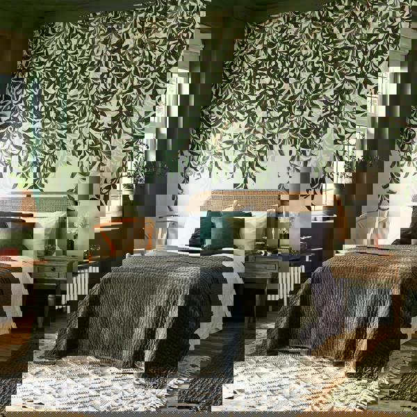 Willow Bough Greens mural displays a beautiful array of olive, sage and deep green shades, all laid upon a green undertoned beige backdrop. This 4x2. 5 metre mural is printed on a matt substate finish, to bring a modern and sophisticated look this to traditional design.