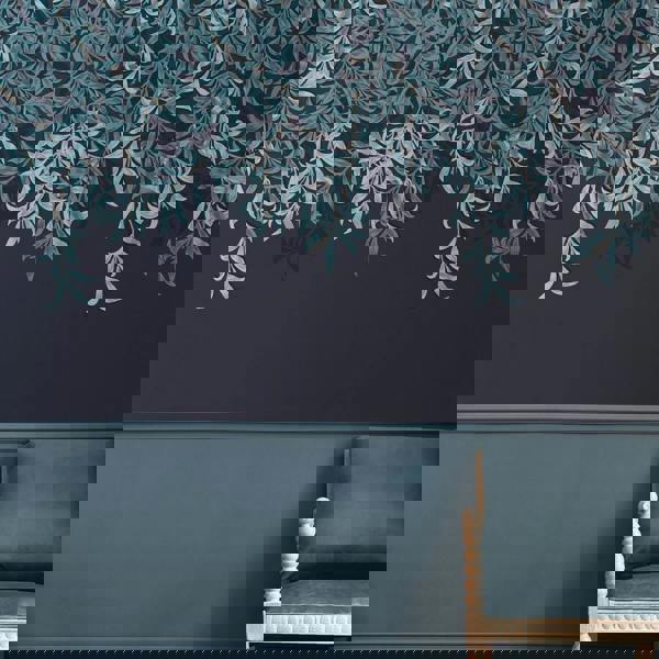 Willow Bough mural navy creates a statement, with shades of dusky navy blue, teal and light pastel blue, brought out by a beautiful deep navy blue backdrop. Printed on a matt substrate finish for that captivating contemporary feel, adding depth and intrigue into any space.